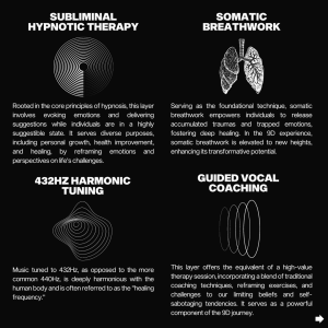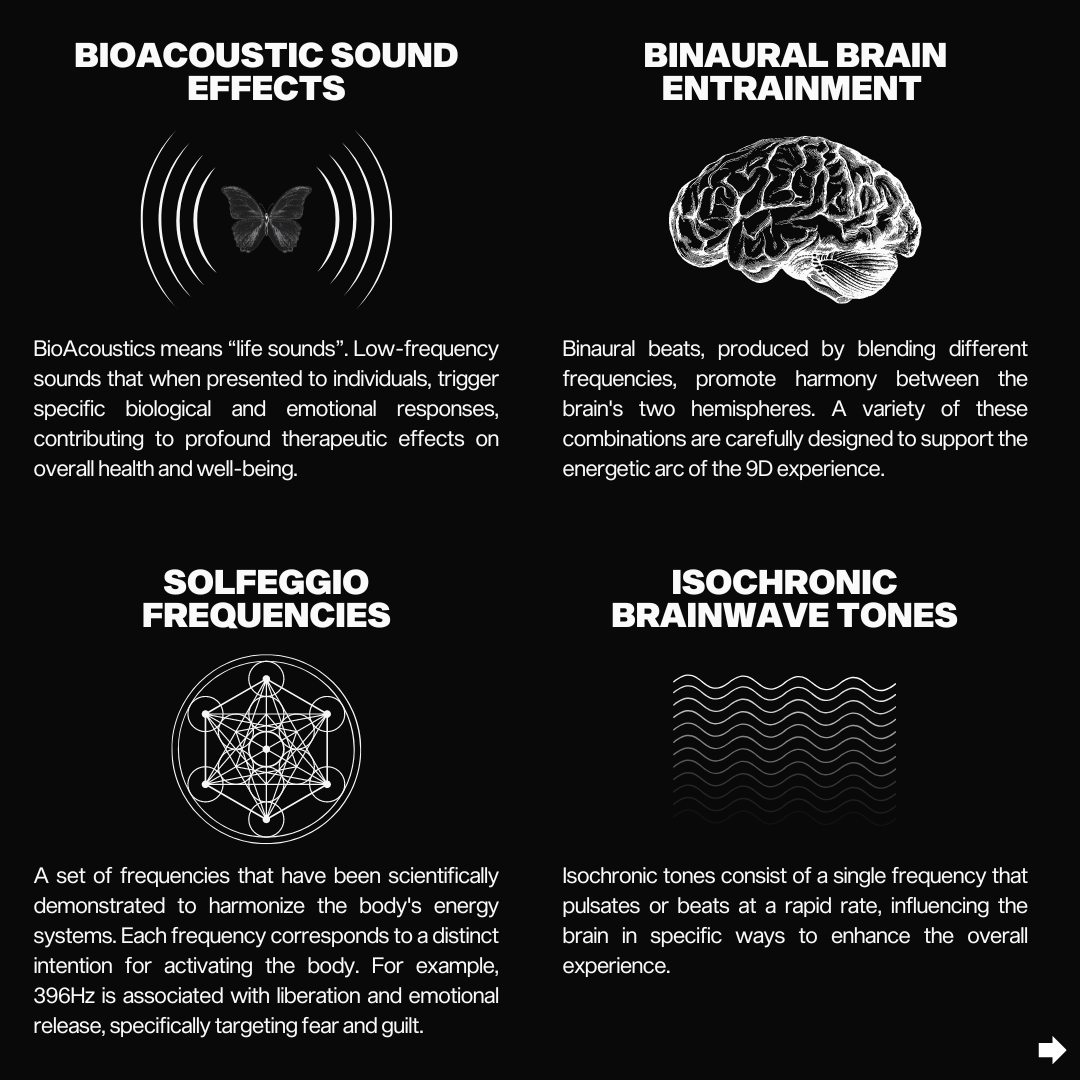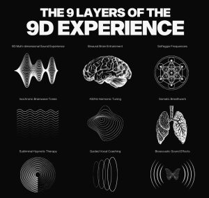 9D Breathwork is a groundbreaking approach to wellness and healing that leverages the most advanced aspects of Breathwork, enriched with a multi-dimensional sound experience. It incorporates a blend of binaural brain entrainment, isochronic brainwave tones, solfeggio frequencies, 432Hz harmonic tuning, somatic Breathwork, subliminal hypnotic therapy, guided coaching, and bioacoustics sound effects.